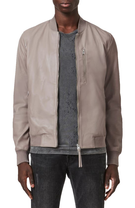 Allsaints Kiro Leather Bomber Jacket In Gravel Grey Modesens