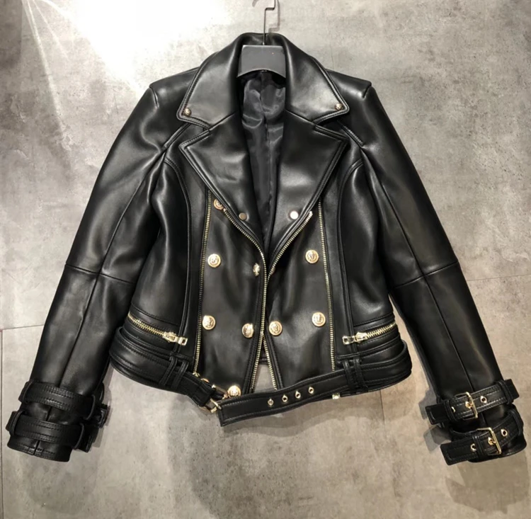Hot Design Korean Fashion Slim Fit Short Jacket Double Breased Woman Lamb Nappa Leather Coat Cool Black Genuine Leather Jacket Buy Black Jacket Leather Women Jacket Woman Leather Real Leather Jacket Product On