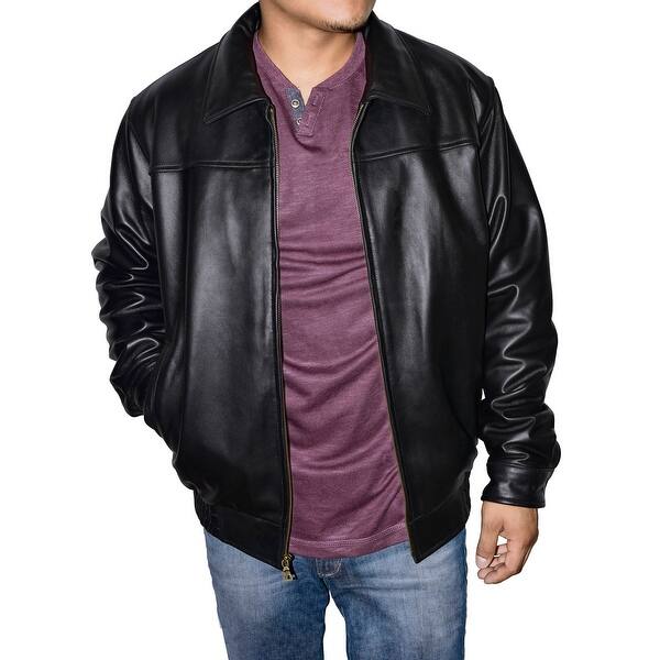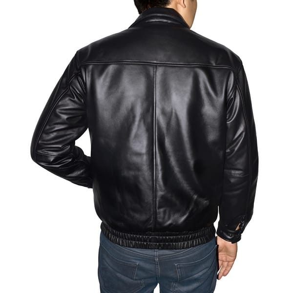 Men S Classic Black Leather Bomber Jacket Overstock 10601660